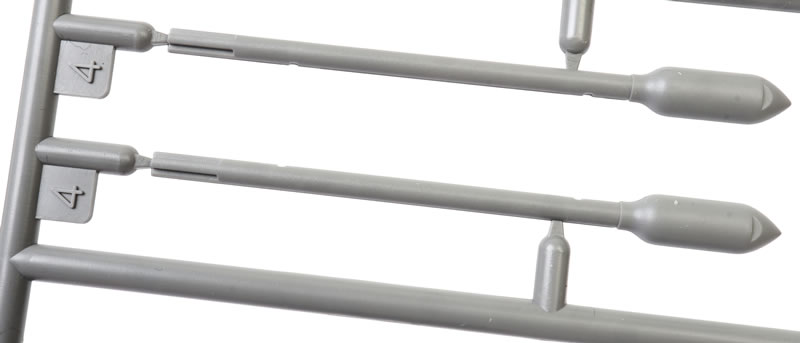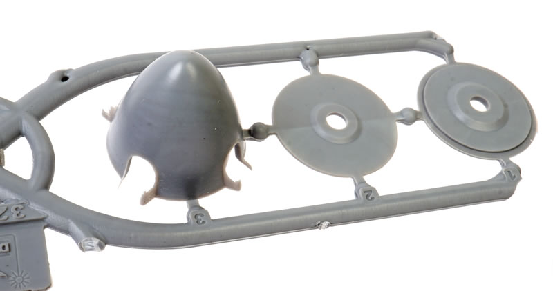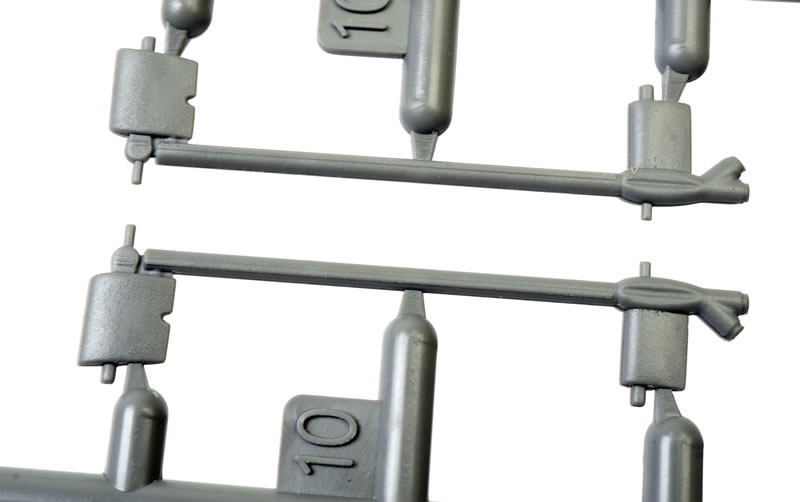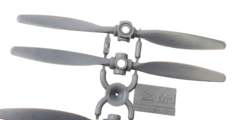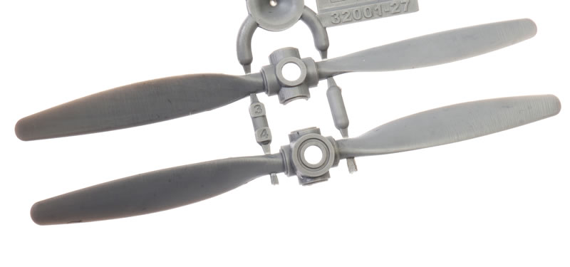 The Hornet’s port and starboard propellers rotated in opposite directions, and the propeller blades are moulded in pairs to ensure the correct pitch and rotation for each unit. Pay attention to the part numbers to ensure the propellers' proper orientation.