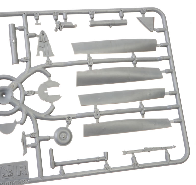 The grey plastic parts are very well moulded. Surface detail is restrained, with crisp recessed panel lines throughout. Most of the large surfaces are smooth and largely free of texture, which is entirely appropriate given the Hornet’s predominantly wooden airframe.