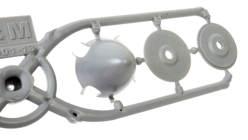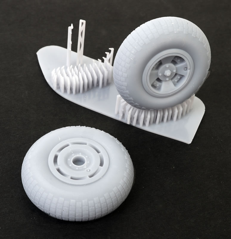 The main wheels are 3D-printed resin items, while the anti-shimmy tail wheel and strut assembly are moulded in plastic.