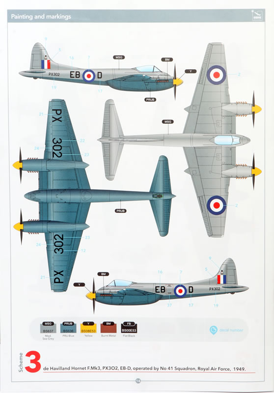 de Havilland Hornet F. Mk.3, PX302, 41 Squadron RAF, 1949. Medium Sea Grey upper surfaces with PRU Blue undersides.