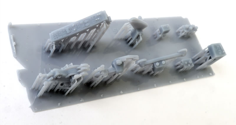 200 grey plastic parts; 32 3D-printed parts; 56 parts on a single colour photo-etched fret; white self-adhesive die-cut vinyl masking sheet; three marking options on a large, glossy Cartograf decal sheet. A separate stencil decal sheet is also included. |