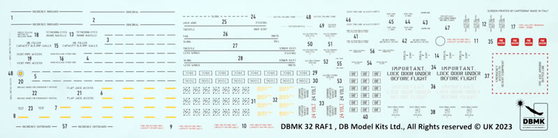 DBMK’s 1:32 scale Hornet comprises 200 grey plastic parts, 32 3D-printed parts, 56 parts on a single colour photo-etched fret, a white self-adhesive die-cut vinyl masking sheet, and three marking options on a large, glossy Cartograf decal sheet. A separate stencil decal sheet is also included.