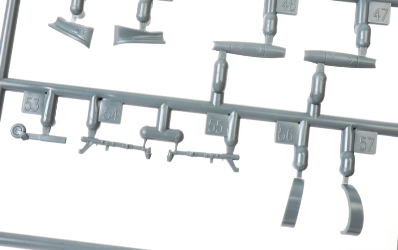 As you remove the sprues from their bags you will note the exquisitely subtle and crisp surface textures. Recessed panel lines, rows of rivets and shrewdly executed fasteners. The photos do not quite do justice to the subtlty of the textures.
