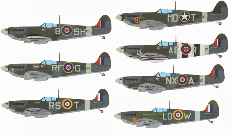 BM124, S/Ldr Brendan E. F. Finucane, CO of No. 602 Squadron, RAF Kenley, United Kingdom, April 1942. This one features a very interesting scheme that looks uncannily like Temperate Sea Scheme with colours similar to Extra Dark Sea Grey and Dark Slate Grey depicted on the upper surfaces.