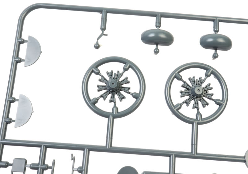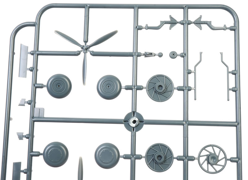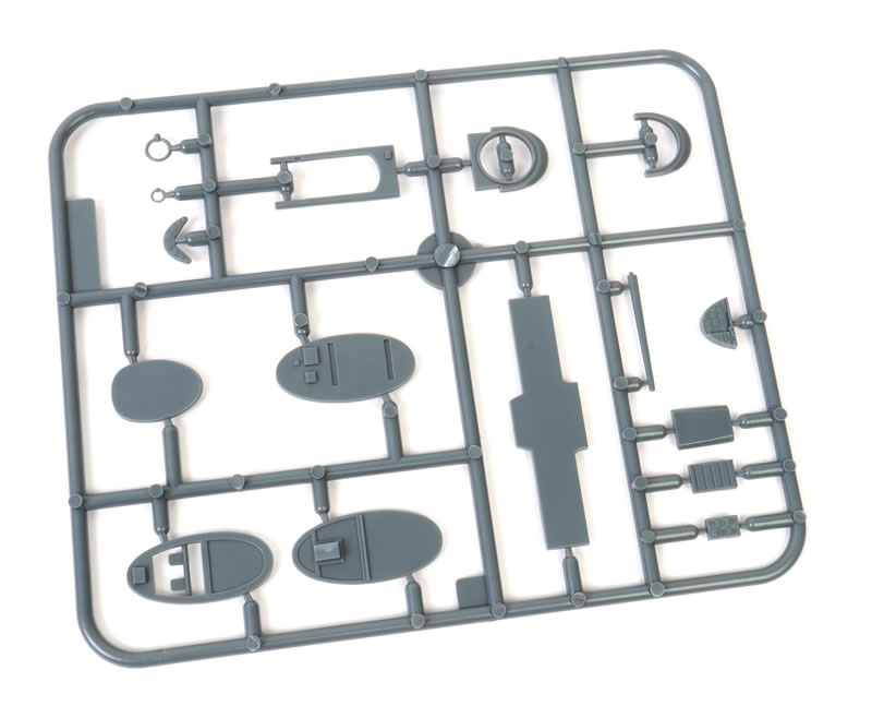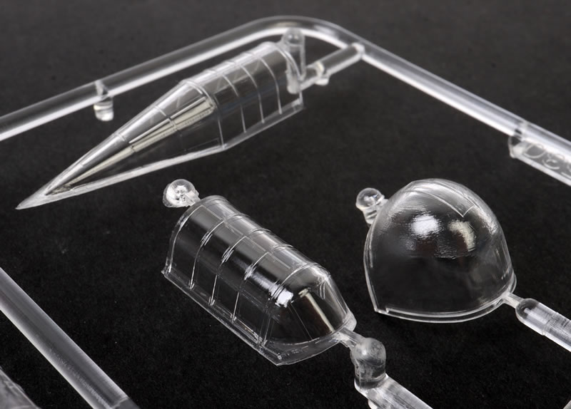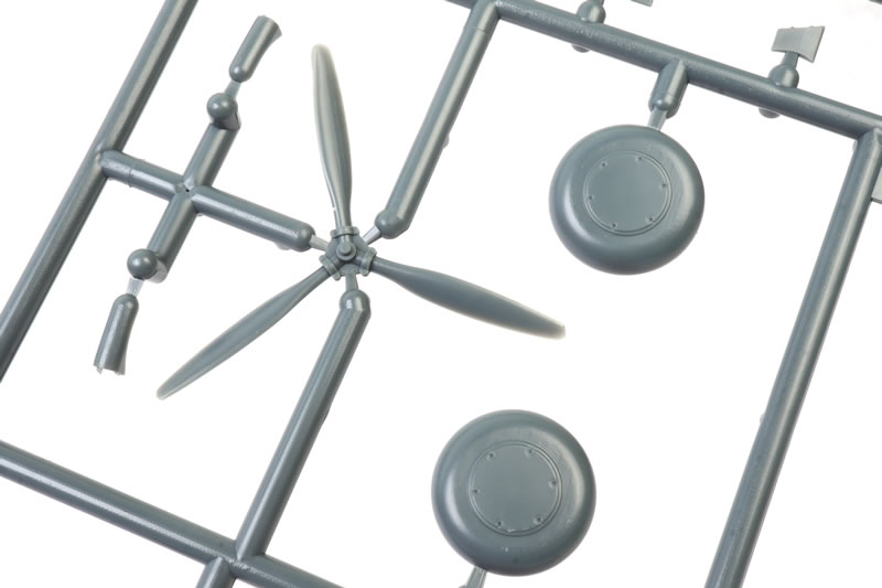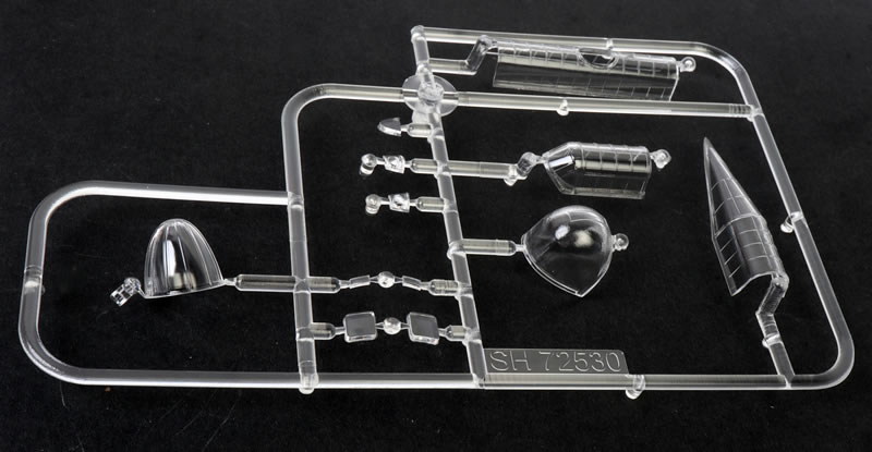 100 parts in medium grey plastic (less 30 parts marked not for use); 12 parts in clear plastic; decals for three marking options |