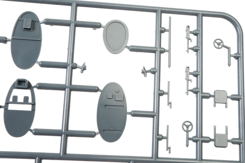 Cockpit and rear gunner's compartment detail is good with framework moulded onto the inside of the fuselage halves and harness straps supplied on the photo-etched fret. The instrument panels are plastic parts with decal dials. It is interesting that the gunner's position in the rear fuseage includes flying controls.