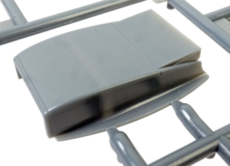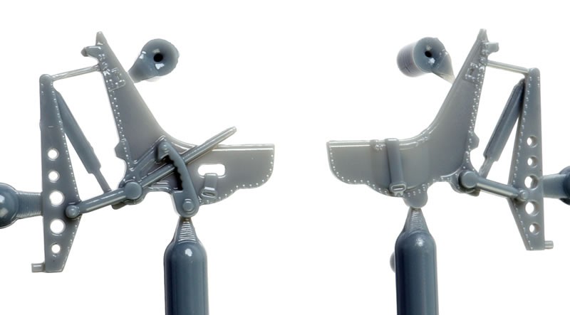 Wheel well walls are moulded as single parts for each side. A particularly nice detail is the inclusion of the early-style undercarriage down indicators as separate parts for each wheel well.