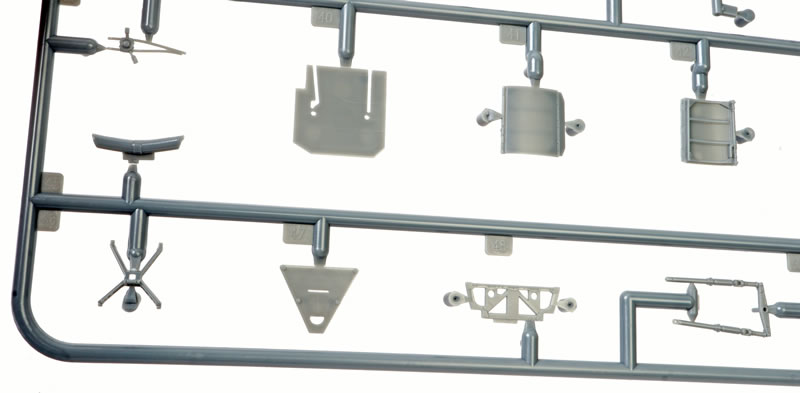 112 parts in grey plastic (less 24 parts marked “not for use”), ten clear parts, decals for two marking options, comprehensive instructions. |