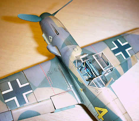 This kit is Hasegawa's 1/48 Messerschmitt Bf109F-4. The model is built almost straight from the box. The only add-on features are photoetched rudder pedals and harness. Plasticard and copper wire have been also used for detailing the cockpit and landing gear. I used the kit decals too.