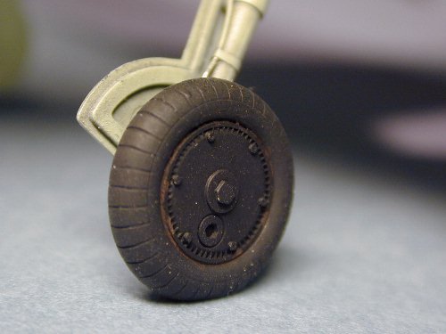 The wheel well contour is modified as specified and the bottom is blanked out with plastic card. Plastic strips give the structural pattern and liners are simulated with aluminium foil - when applied, it gets wrinkles, just like cloth. One important notice here - if you use the method of gluing the upper wings first, don't forget to remove the "pins" on the underside to give some freedom for the parts to be adjusted afterward. I added the forward actuator to the wing radiators and the cooling flaps are detailed with plastic card. After finishing the wing-fuselage assembly, slats are glued in a partially open position.