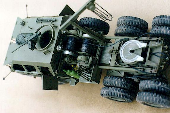 The drive train and suspension are spectacular. In fact, the details are so well done that it would be a shame not to display the model on a mirror. There are no less than five individual drive shaft components. The differentials even simulate the rough castings of the real items. The front wheels articulate. The wheel and tire assemblies are excellent and easy to assemble. All wheel assemblies mount via vinyl bushings. The only problem I encountered during assembly of the tractor was the cab's aft bulkhead. Assembly produced a seam that needed to be filled with putty. Once sanded and polished; however, the component cleaned up nicely.