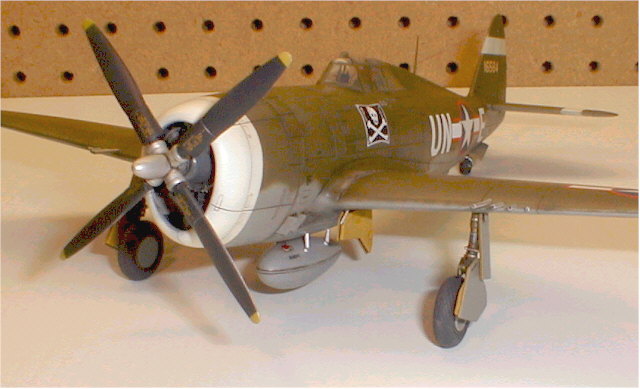 The cockpit was painted with Floquil Medium Green, which was a near (close enough for me) match for Republic's bronze green. The wheel wells were painted with Testor's Zinc Chromate Yellow. I weathered the aircraft with an oil wash, and various stains and streaks were added with pastels. Finally, worn paint was simulated with a Silver Prismacolor artist's pencil.