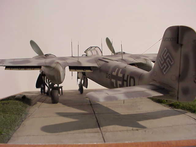Building the Moskito plane I ad the following modifications to the kit: - Wings with upward angled wing tips - Split flaps in the wing like the Fw190 - Shorter ailerons due to the upward-angled wingtips - Cooling flaps on the engine nacelles open - Special flame damper for the engine exhaust - Junkers VS 9 prop (Padel Blade) - Close of one gun-port - Cockpit boarding stair - Tyres made flat and bulged. Extra details I ad on the kit are: - Open Gun-bay with one MK108 30mm on each side - Junkers Jumo 211 engine with open hatches - Radar antenna for the 218 Neptun on the wing - Seatbelts and extra cockpit details.