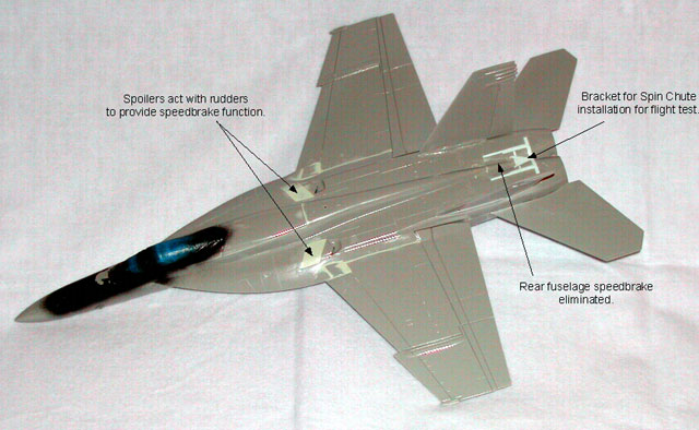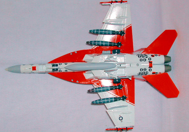 1/72 scale F/A-18E is finished as the Spin/High AOA test airplane after it was