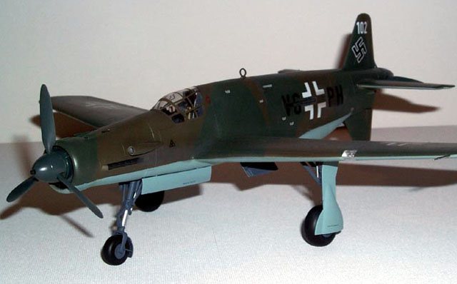 I painted the model Blue RLM 65 on the undersides and RLM 81/83 on top. Props and spinners are Black Green.